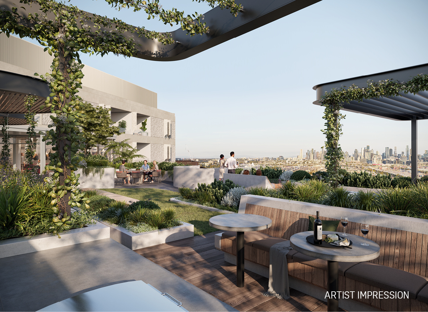 Residents enjoying Indi rooftop