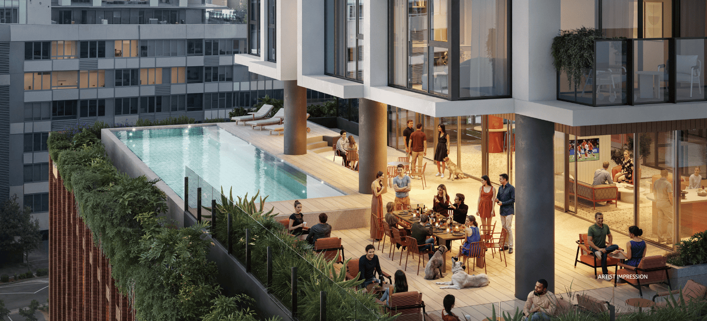 Studio, 1 and 2-bed apartments are elevated by curated spaces and thoughtfully integrated extras, think a sky lounge, rooftop pool, co-working spaces and a dog wash, all under one roof.
