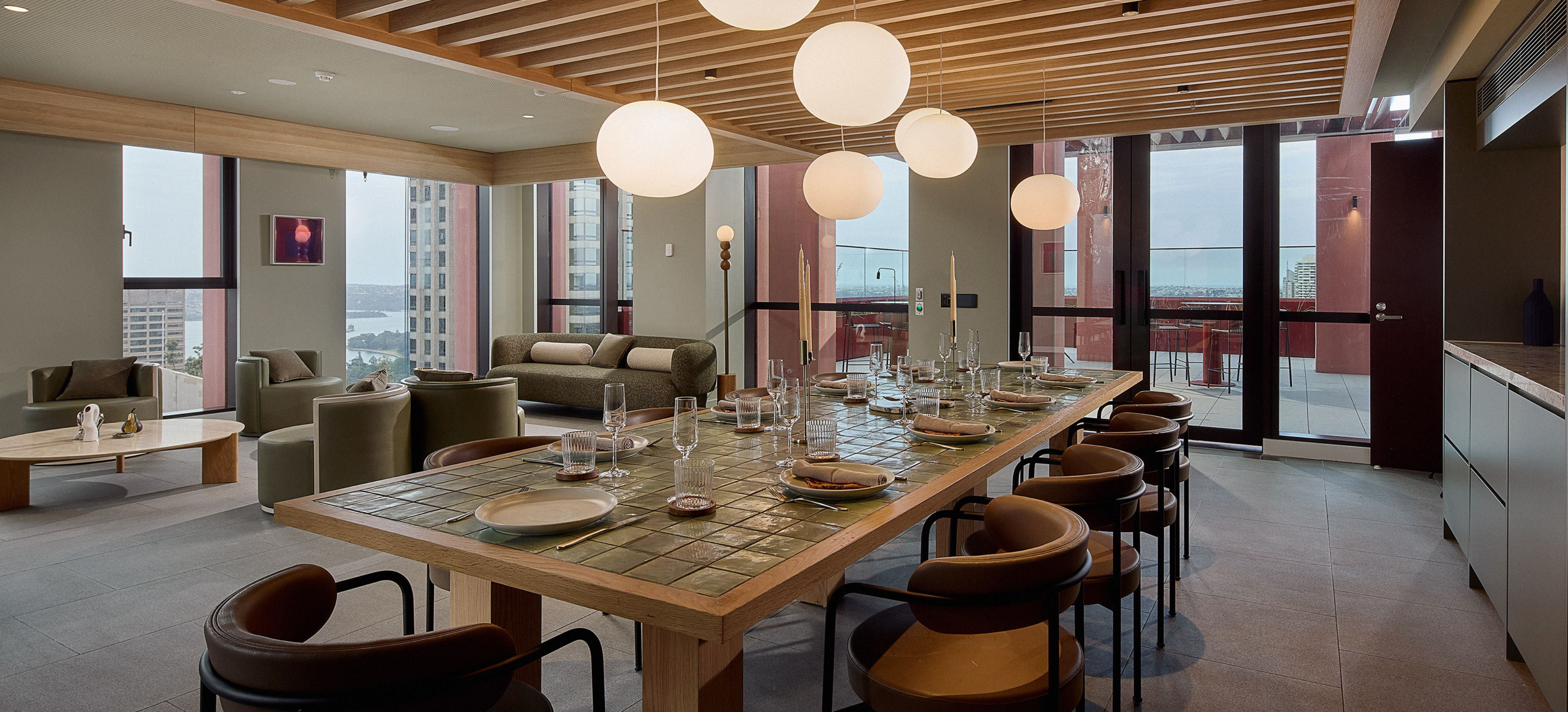 If staying active is your thing, enjoy features such as a gym, pool, sauna and yoga studio. There are also private dining rooms, shared lounges, kitchens, beautiful outdoor terraces and a great community to connect with, if you like. And no matter what time zone you’re working to, our co-working spaces are ideal for remote work, recording a podcast or hosting clients in style.