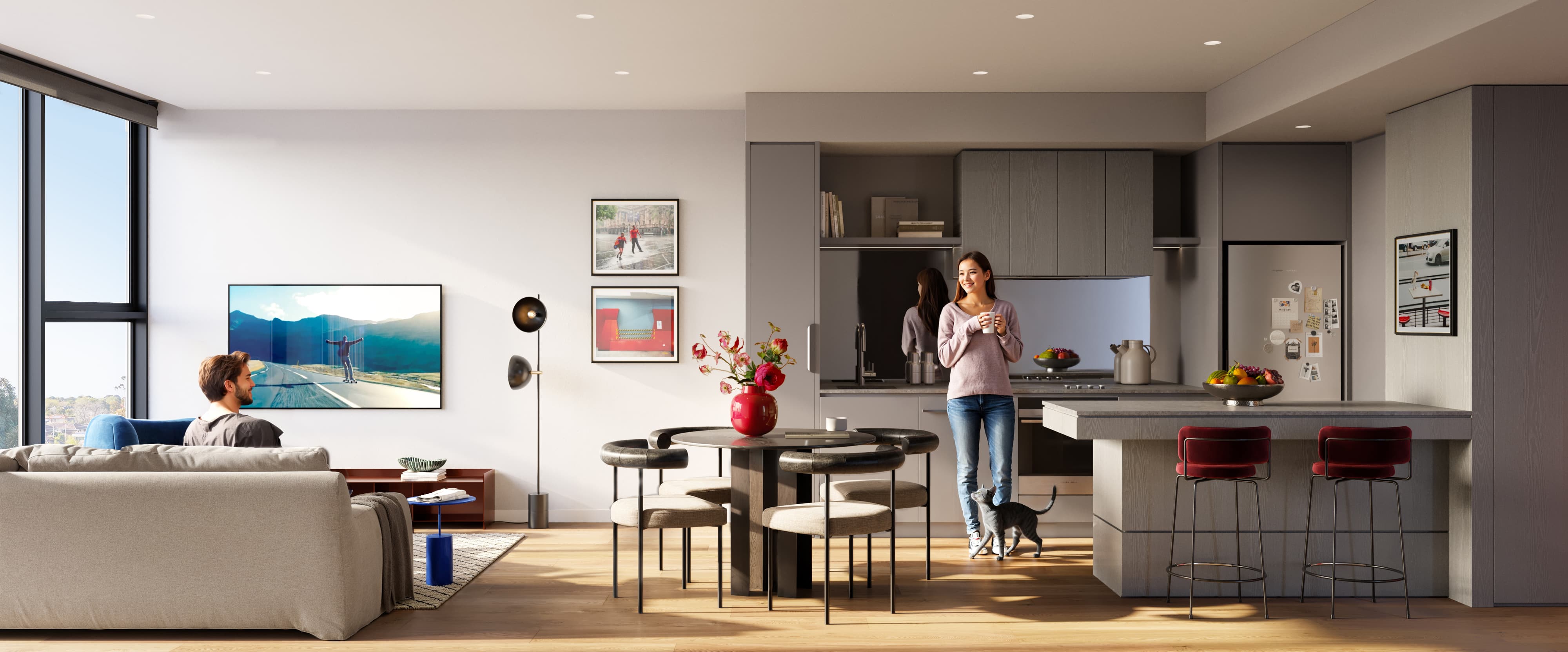 Within your local community of 434 apartments in a single building, you’ll mingle with like-minds while enjoying the community-oriented spaces, including a cocktail lounge and co-working areas. You’ll find everything you need here to live a life of convenience and wellness, while feeling good about your impact on the environment. This project is on track to achieve impressive sustainability ratings thanks to solar panels and being 100% powered by renewable electricity. Is there any other way?